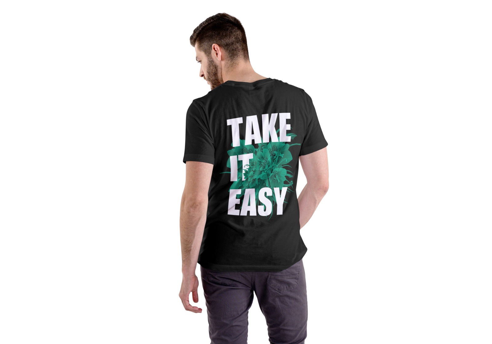 • “TAKE IT EASY” bold typography printed design